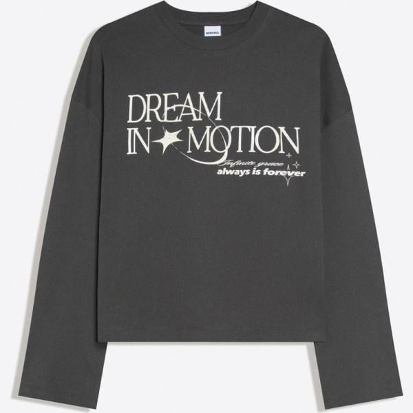 Camiseta mujer oversize gris oscuro con diseños de manga larga