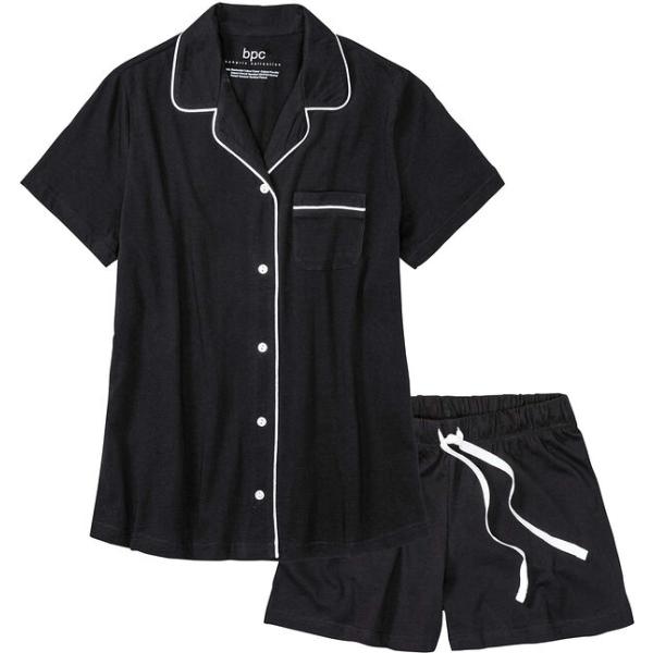 Pijama mujer jet black corto con botones algodón