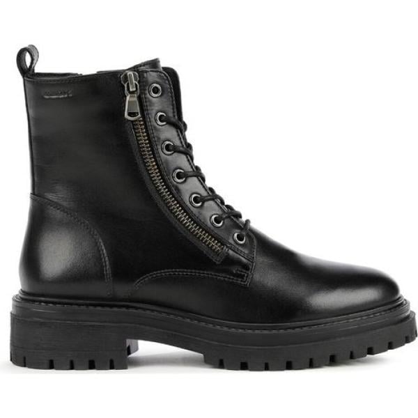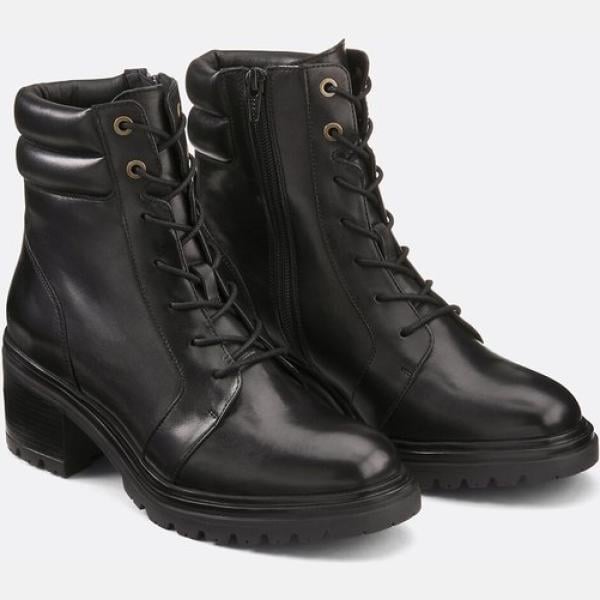 Botines mujer con cordones jet black de tacón con cremallera poliéster