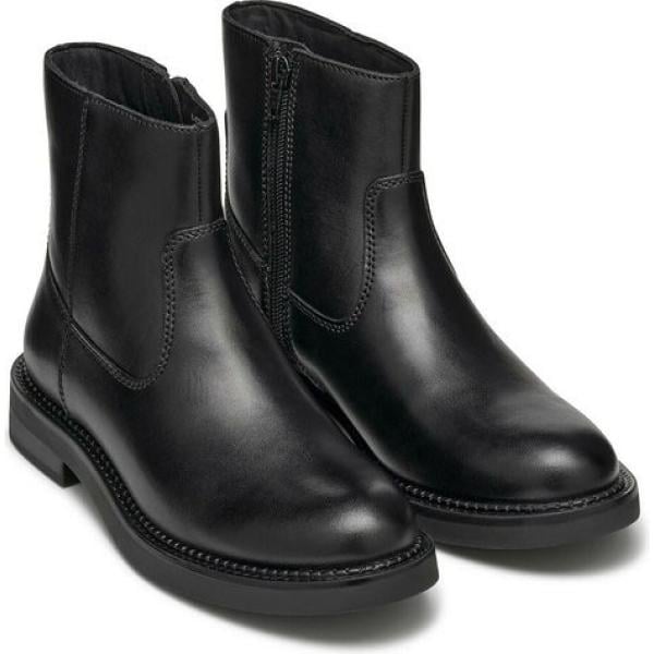 Botas mujer biker jet black de tacón de punta redonda con cremallera poliéster