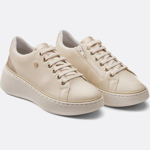 Sneakers mujer con cordones light brown efecto ante con cremallera poliéster