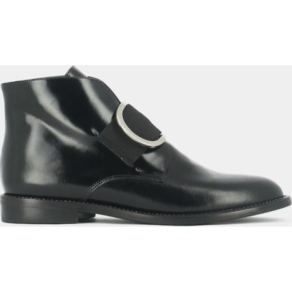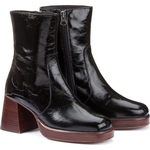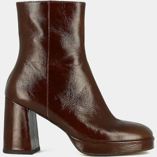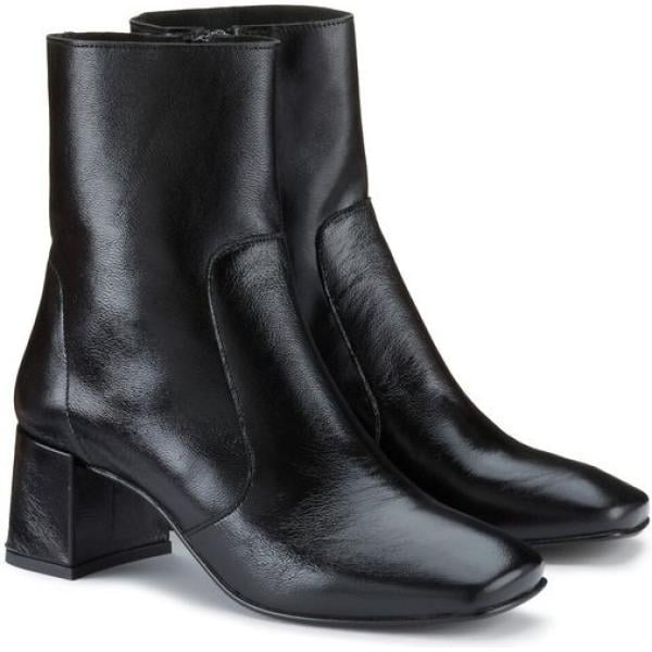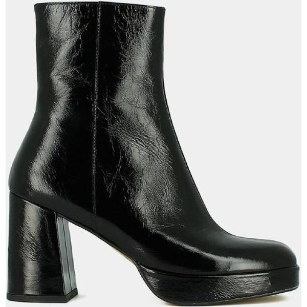 Botines mujer jet black efecto charol de tacón con cremallera piel