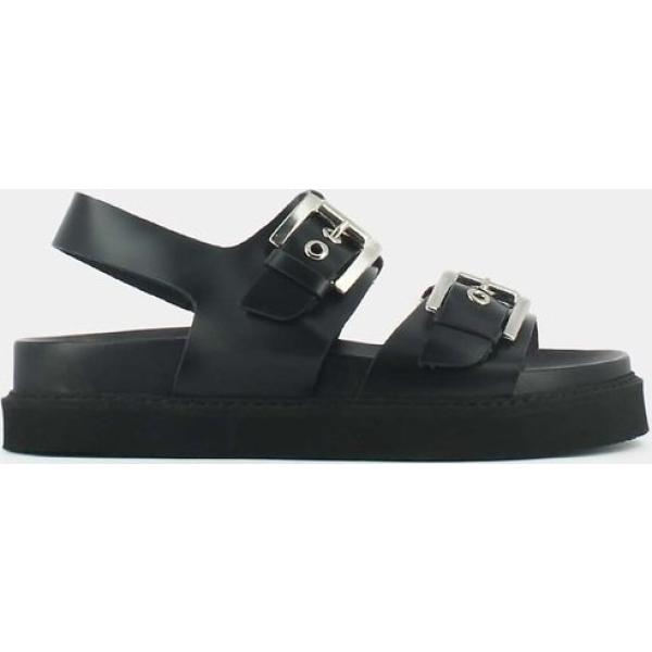 Sandalias de piel mujer jet black de tacón con hebilla piel