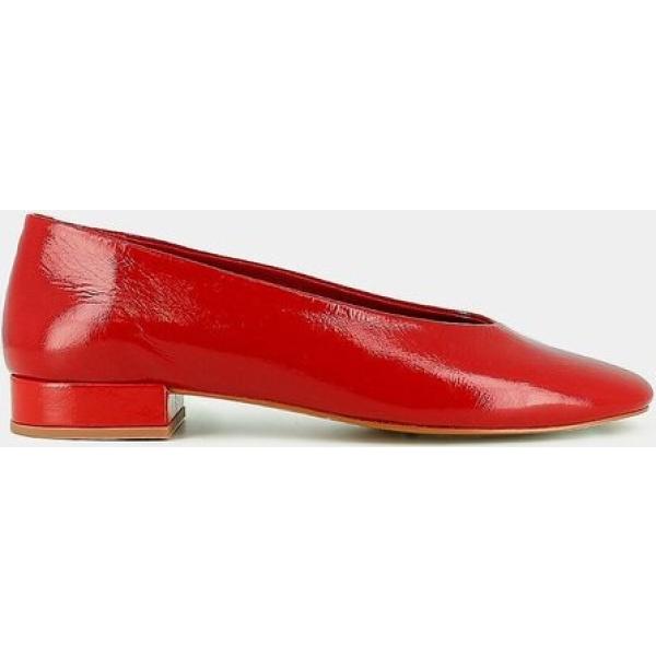 Bailarinas mujer rojo de tacón de punta redonda piel