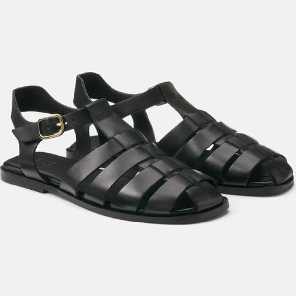 Sandalias de piel mujer jet black de tacón con hebilla poliéster