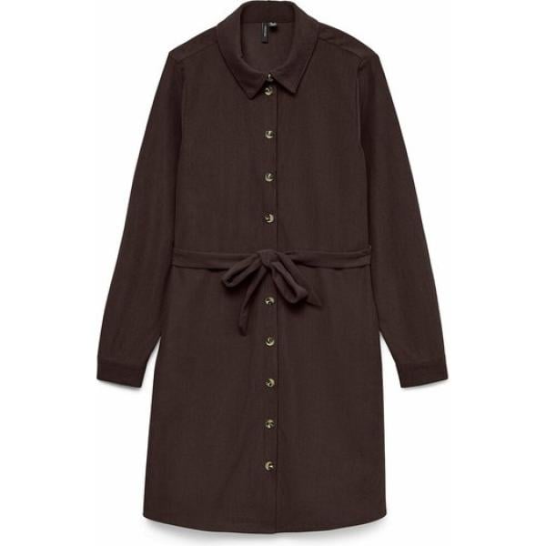 Vestido largo mujer marrón oscuro cuello polo corto de manga larga poliéster