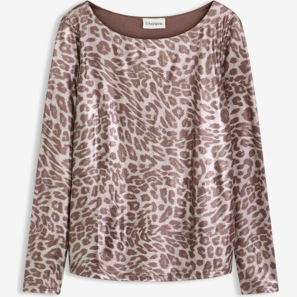 T-shirt femme gris clair animalier effet brillant