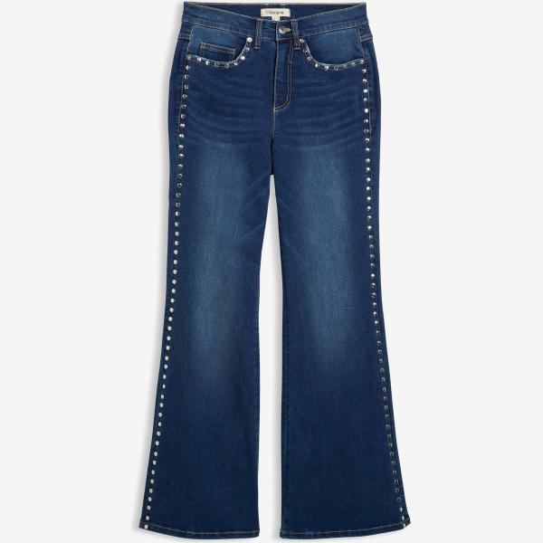 Jeans femme forme évasée blanc neige taille haute denim