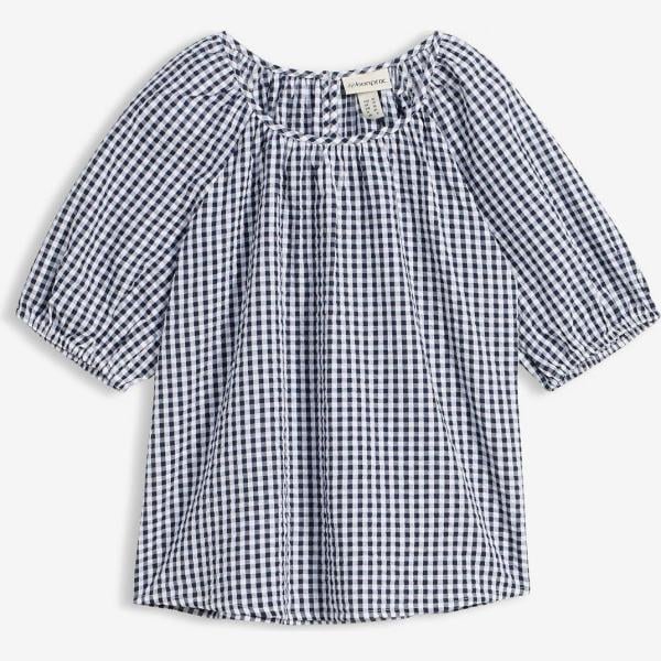 Blouse femme blanc neige à manches courtes laiton