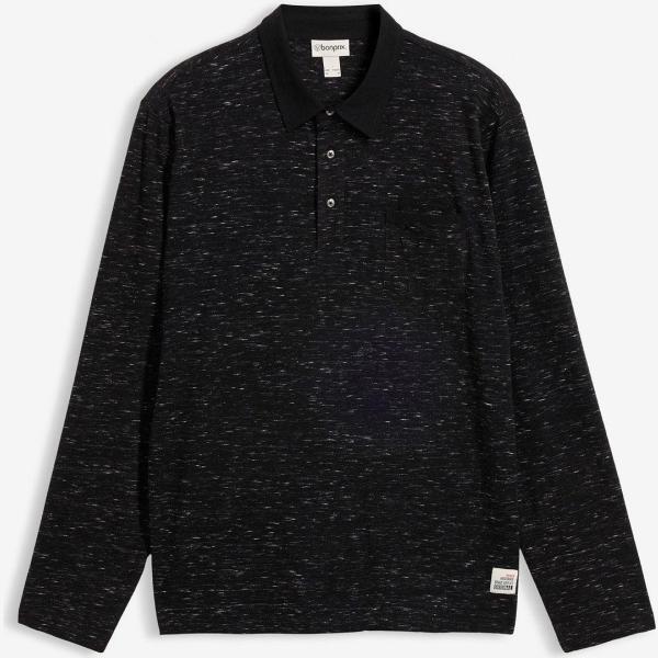 Polo homme noir foncé à manches longues laiton