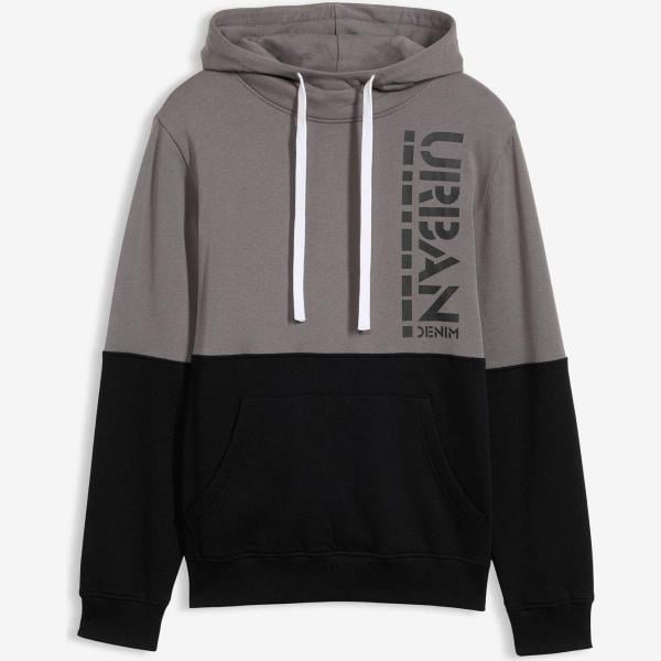 Sweat à capuche homme noir foncé imprimé col à capuche