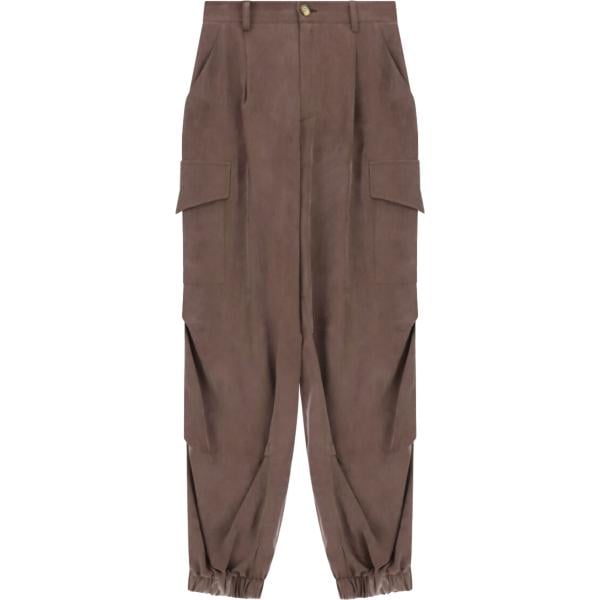 Pantaloni sportivi da donna in marrone scuro a vita alta