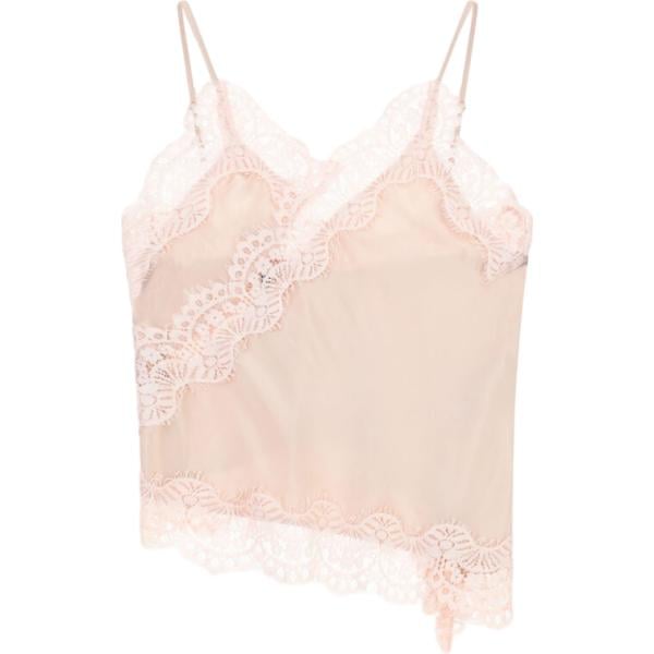 Top da donna forma asimmetrica in beige sabbia con pizzo con spalline