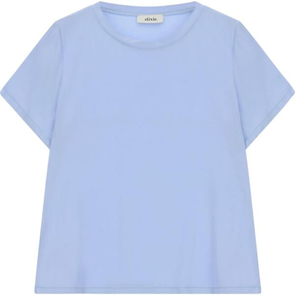 T-shirt da donna in azzurro con scollo a maniche corte
