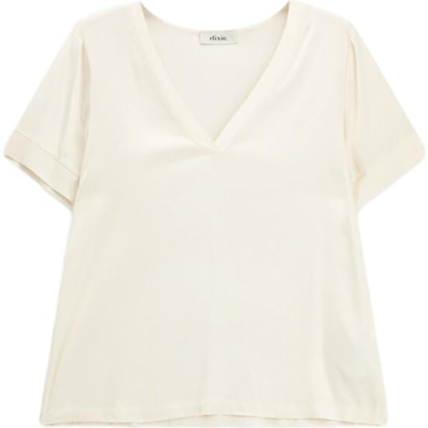 T-shirt da donna in bianco avorio collo a v a maniche corte