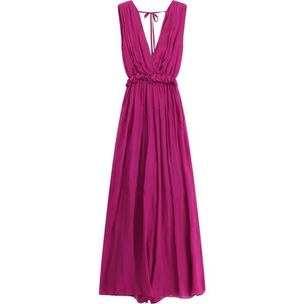 Vestito lungo da donna in bordeaux con ruches collo a v lungo a maniche corte