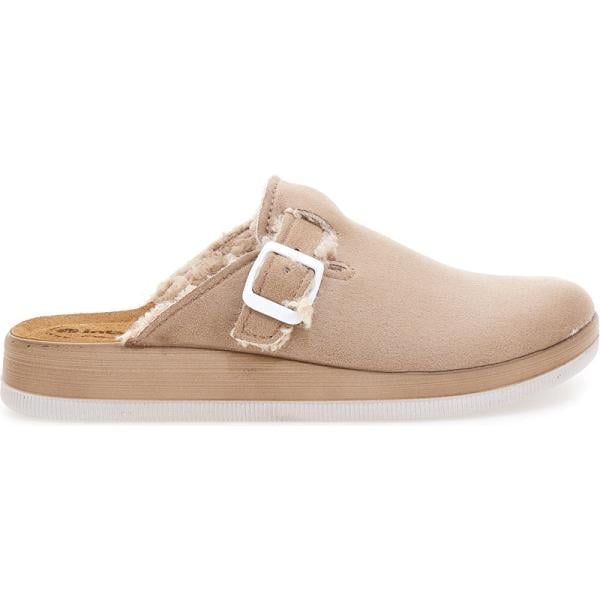 Pantofole da donna in bianco neve effetto scamosciato con fibbia