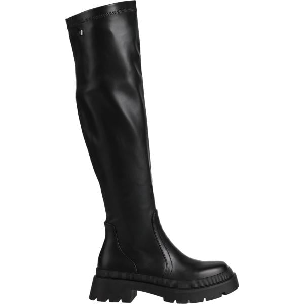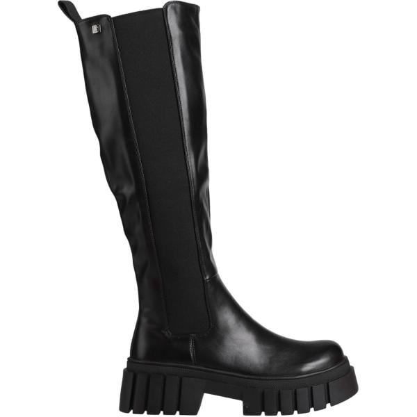Stivali da donna in nero pece con tacco squadrato a punta tonda