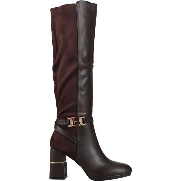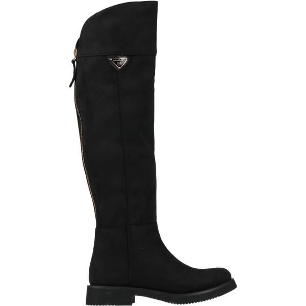 Stivali da donna in nero pece effetto scamosciato con tacco squadrato a punta tonda