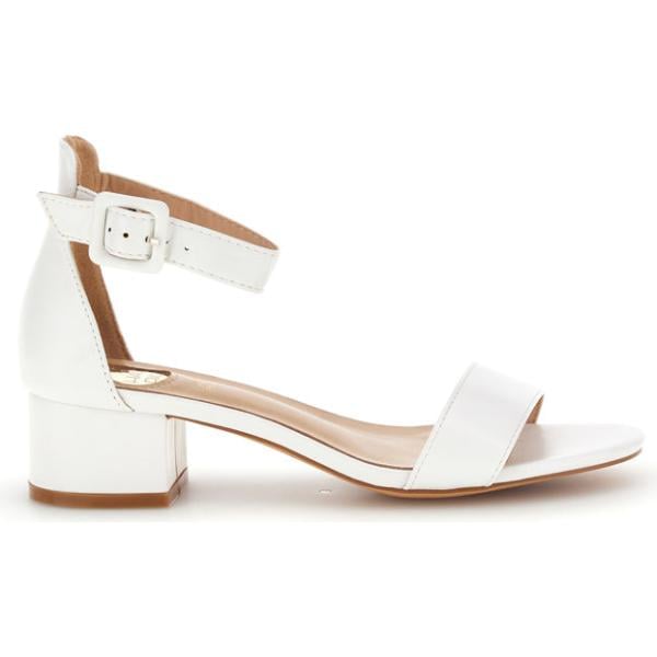 Sandali con tacco da donna in bianco neve con tacco con cinturino