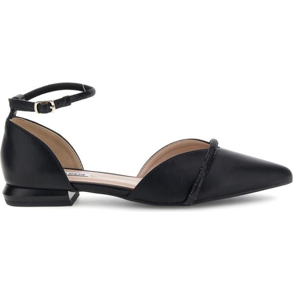 Sandali da donna in nero pece a punta con cinturino