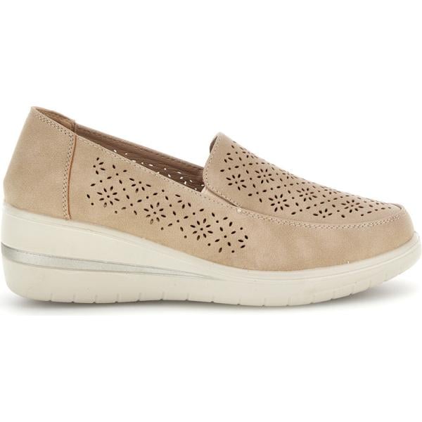 Mocassini da donna in bianco avorio con tacco zeppa slip on