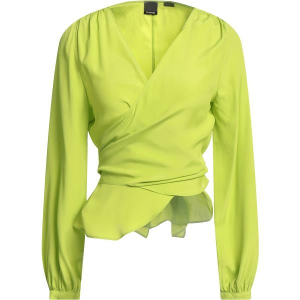 Top da donna in giallo chiaro con scollo senza tasche a maniche lunghe con bottoni in seta