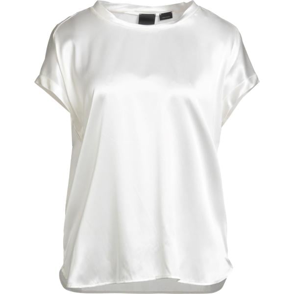 Top da donna in bianco neve girocollo a maniche corte in seta