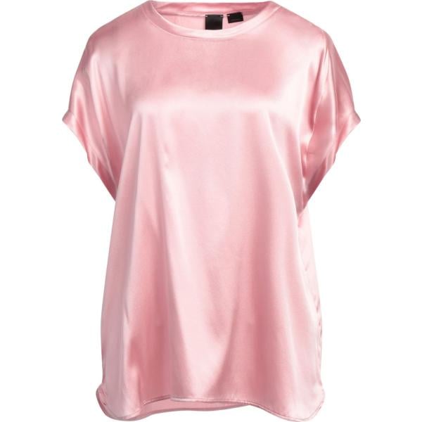 Top da donna in rosa chiaro girocollo a maniche corte in seta