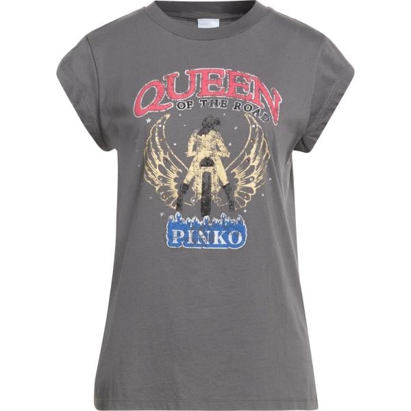 T-shirt da donna in grigio scuro con stampe girocollo a maniche corte in cotone