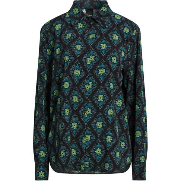 Camicia da donna in nero pece collo classico a maniche lunghe con bottoni