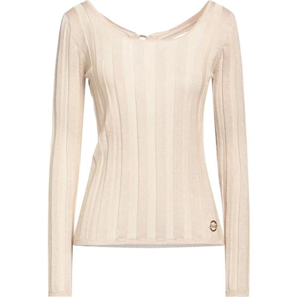 Pullover da donna in beige sabbia effetto laminato collo aperto senza tasche a maniche lunghe in viscosa