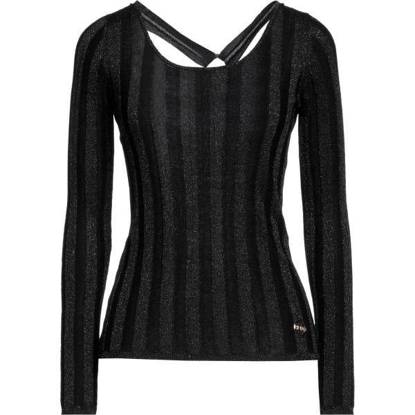 Pullover da donna in nero pece effetto laminato collo aperto senza tasche a maniche lunghe in viscosa