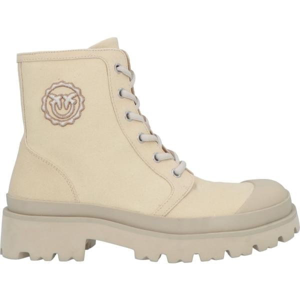 Stivaletti da donna con stringhe in beige sabbia con tacco squadrato a punta tonda con lacci in pelle
