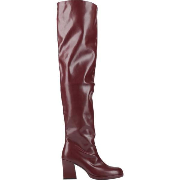 Stivali sopra il ginocchio da donna in bianco neve con tacco squadrato a punta tonda in pelle