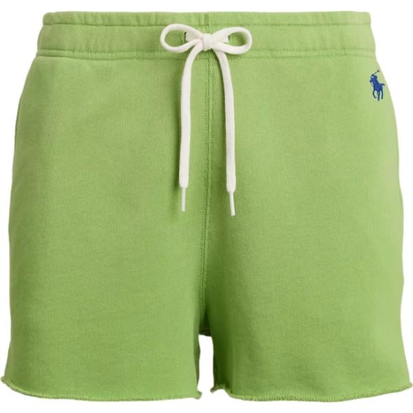 Pantaloncini sportivi da donna in verde scuro con frange corto con coulisse in pile