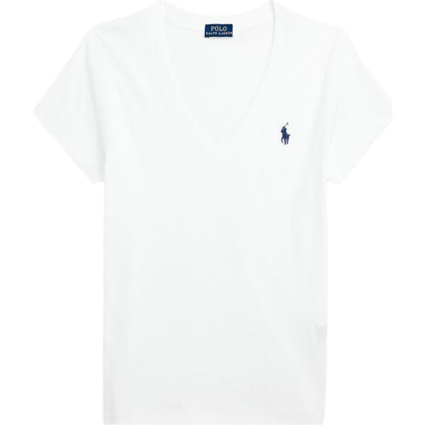 T-shirt da donna in bianco neve collo a v in cotone