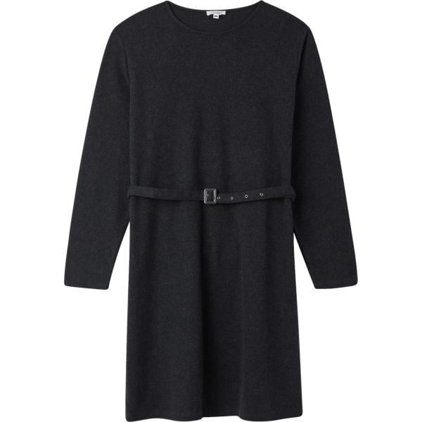 Vestito corto da donna in nero pece lavorato a maglia girocollo corto a maniche lunghe con cintura in cotone
