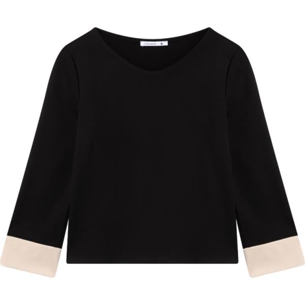 T-shirt da donna in nero pece girocollo a maniche lunghe in viscosa