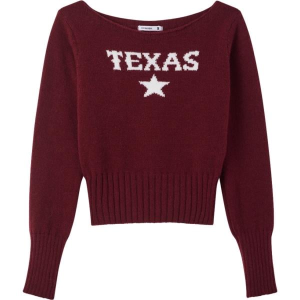 Maglione da donna in bordeaux con stampe con scollo a maniche lunghe a vita alta in lana