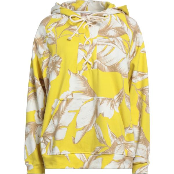 Felpa con cappuccio da donna in giallo chiaro a fiori collo con cappuccio a maniche lunghe in cotone