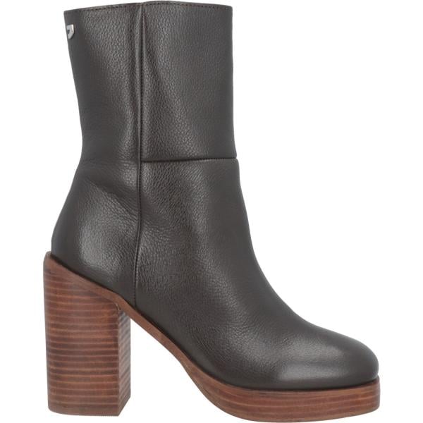 Anfibi da donna in nero pece con tacco squadrato a punta tonda con zip in pelle