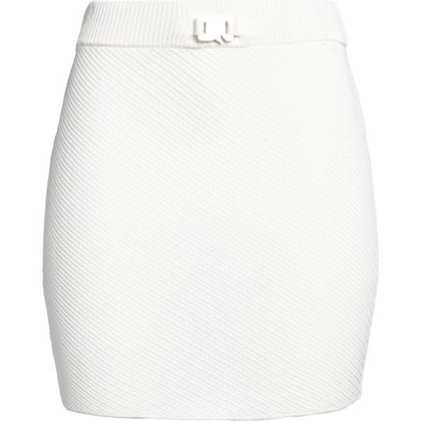 Minigonna da donna in bianco neve lavorato a maglia corto con fibbia in viscosa