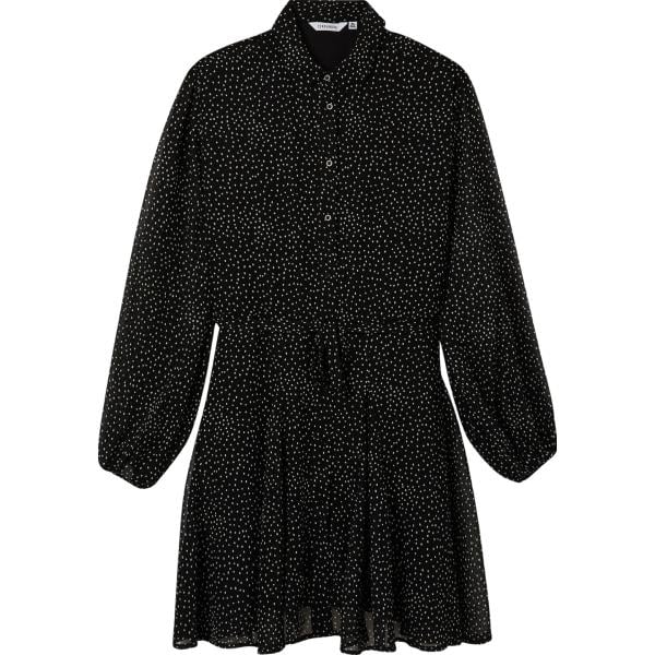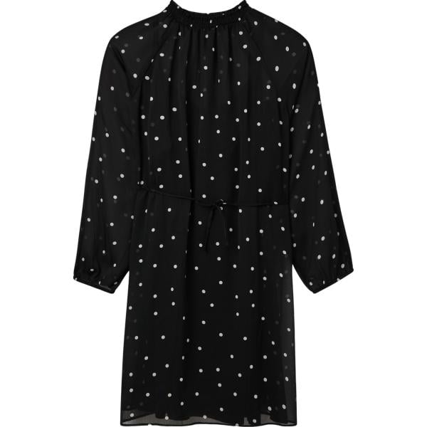Blusa da donna in nero pece a pois con ruches collo a v a maniche lunghe