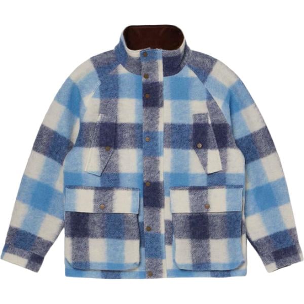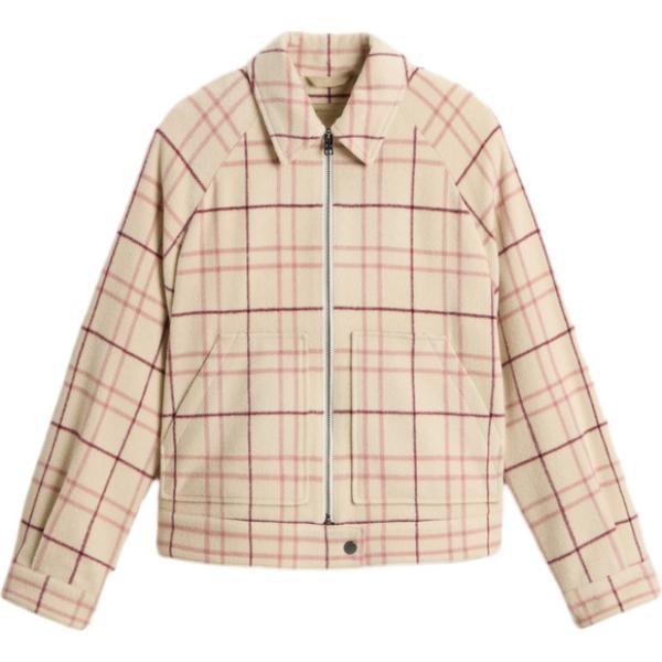 Cappotto da donna in bianco avorio a quadri con zip in lana