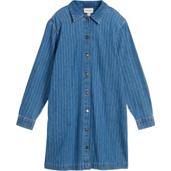 Vestito da donna in blu scuro a righe a maniche lunghe in denim