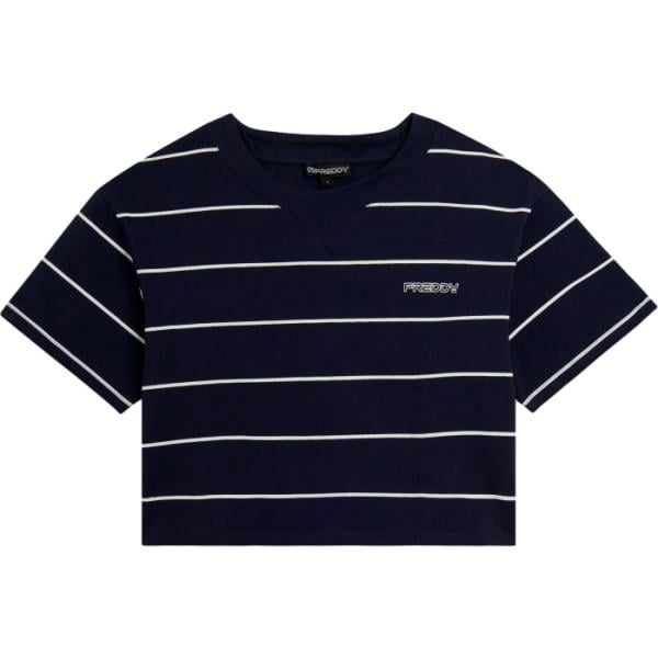 T-shirt da donna a righe lavorato a maglia girocollo in viscosa