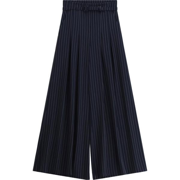 Pantaloni a palazzo da donna in blu scuro a righe con cintura