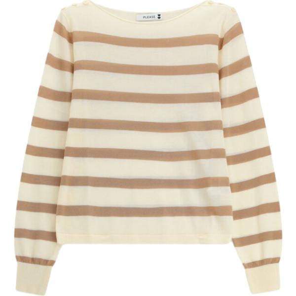 Maglione da donna in bianco avorio a righe lavorato a maglia con scollo in viscosa