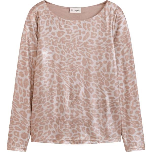 Maglione da donna in grigio chiaro animalier effetto lucido
